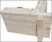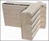 A falszerkezet tömör gerendákból épül fel, melyre 10 cm (vagy megrendelő igénye szerinti) vastagságú hoszigetelő réteg kőzetgyapot- kerül, majd a párazáró réteg és a párnafákra rögzített belső burkolat, mely lehet lambéria – 22 mm-es hajópadló vastagságú 15 cm szélességben, vagy bármilyen más belső szerelhető - burkolat – gipszkarton, betonip lap és ragasztott terméskő stb., melyek változatos belső terek kialakítását teszik lehetővé. Egyedi igény szerint váz szerkezetű házat is tudunk készíteni, kívűl 28mm vastag kűlsőborítással amely közé 10cm-es szigetelés kerül amelyre belül rájön a párazáró fólia és 22mm-es hajópadló vastagságú 15cm széles lambéria.A kiválasztott nyílászárokat egy ú.n. vaktokba építjük be, stabil csavarkötéssel, mely függetlenné teszi a nyílászárokat az épület természetes mozgásaitól és az ebből adódó deformációs hatásoktól. Mind a külső, mind a belső fafelületen, a vaktokhoz kapcsolódóan védőborítás egészíti. Az általunk kedvelt- de egyben nem műszárított, hossztoldás-mentes borovi vagy vörösfenyőből készült négyrétegű ragasztott profilú, gyárilag osztós, 4-16-4 mm-es rétegosztású k=1,1W/m2 biztonsági önkenő-vasalatos, alumínium zsalugáter.